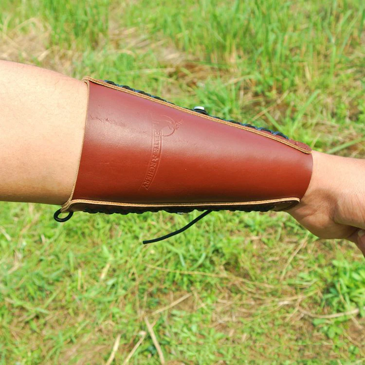 Arm Guard Full-grain Leather Arm Protector 16.5x17 cm in Brown Pull Arm for Archery Shooting Huntin